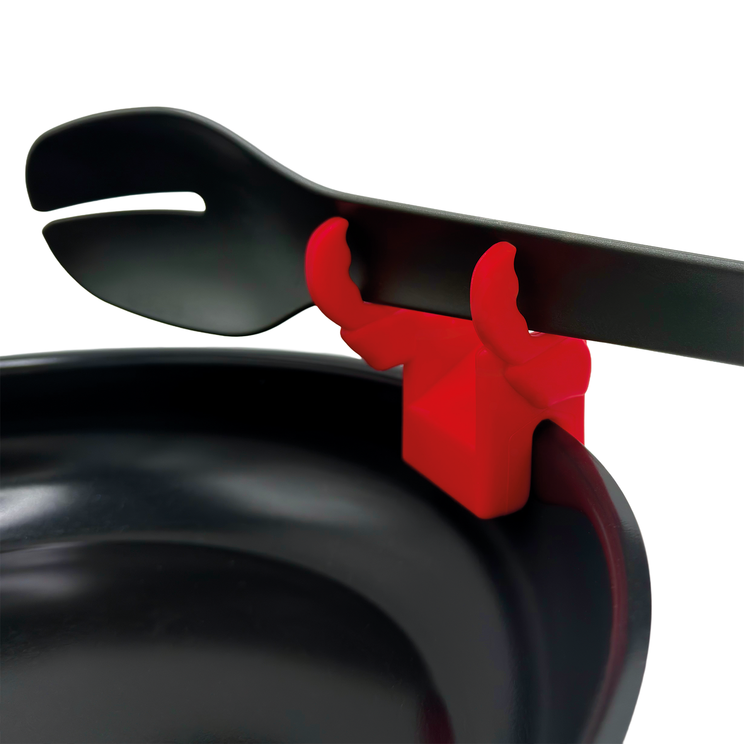 Unser Löffelhalter ist das einzige Produkt weltweit, welches eine speziell gestaltete Anlagefläche für den Löffel hat, um das Abrutschen in den Topf zu verhindern. Zudem ist holo nicht nur hitzebeständig und spülmaschinenfest, sondern auch modular aufgebaut. Aktuell kannst du die Krabbenscheren verwenden, um verschiedene Utensilien zu halten, und wir planen, in Zukunft weitere Add-ons zu entwickeln.